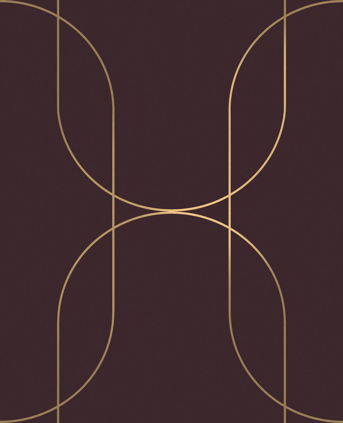 See disain on kui vaikne nauding, elegantne ilma liialdusteta. Peened šampanjavärvi jooned joonistavad tasakaaluka geomeetria sügava, sametise lillakas-punaka tausta. Kontrast on pehme, kuid kindel, nagu küünlavalgus siidil. Kumerustel on rütm, mis mõjub tahtlikult ja meditatiivselt, tasakaalutunnetus, mis loob rahu nii kaasaegsele kui ka klassikalisele interjöörile. See on disain oma kõige tasakaalukamal kujul, enesekindel oma peenuses, kütkestav oma vaikuses.