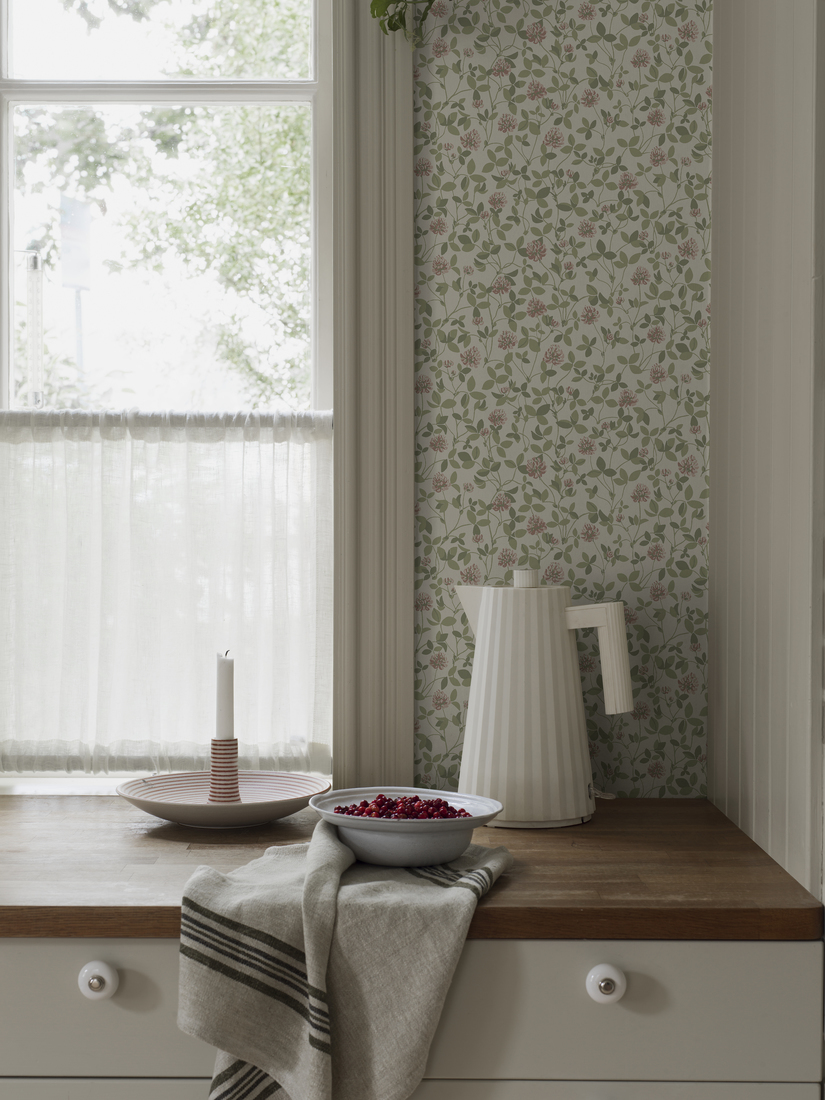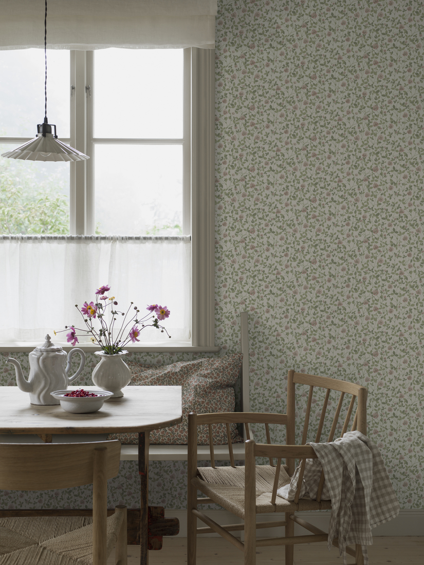 Boråstapeteri arhiivis leiduvast 1970. aastate tapeedist inspireeritud muster jäädvustab punase ristiku elava ilu roosade õite ja elava rohelise lehestikuga. Tihe, väikese mustriga tapeet loob seinale harmoonilise efekti, andes peaaegu monokromaatilise ilme. See ristikheina motiiviga tapeet toob suviste aasade rõõmu ja energia siseruumidesse,