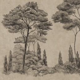 Seinamaalinguna mõjuv pilttapeet toob oma detailsete pliiatsitöödega, mis kujutavad okaspuid ja küpresse, Itaalia aedade rahuliku ilu siseruumidesse, rafineeritud ja ajaloolises stiilis, mis lisab igale ruumile kõrgust ja elegantsi, muutes selle ideaalseks neile, kes hindavad klassikalist kunsti.