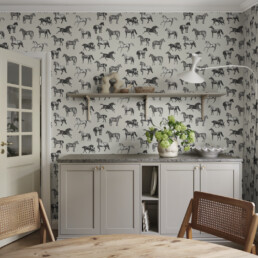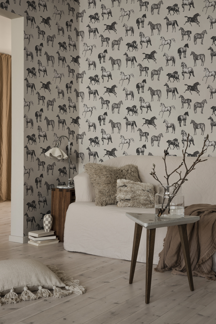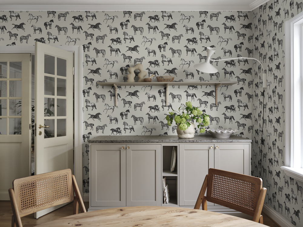 Kaunid ja graatsilised hobused – paljud detailid ja suur kontrastsus annavad sellele tapeedile graafilise ilme, mis sobib ideaalselt nii maa häärberitesse kui ka linnakorteritesse.