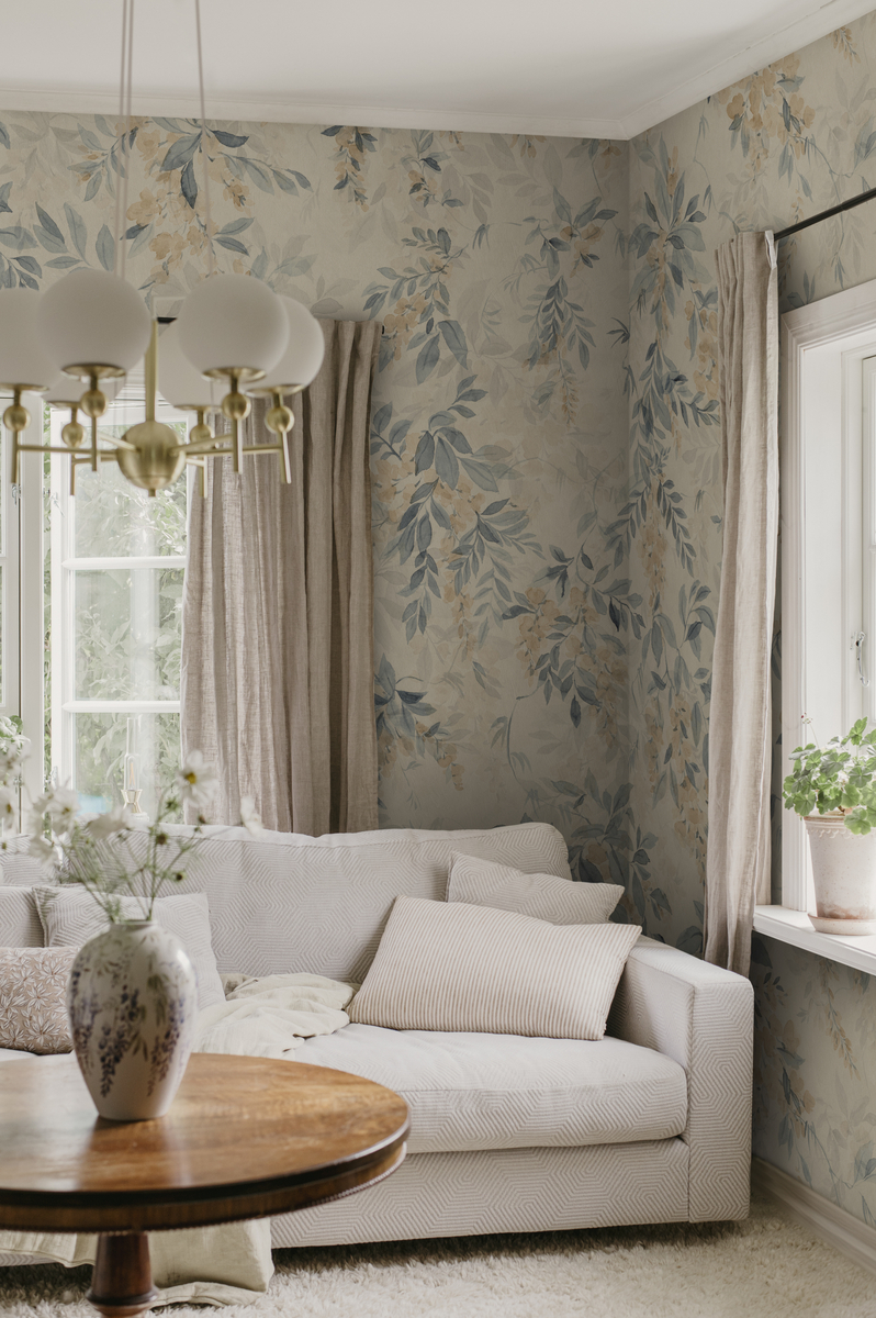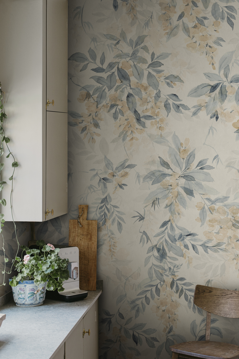 Õrn käsitsi maalitud pastelltoonides lilleline sümfoonia. See seinamaalinguna mõjuv tapeet õhkab õrna rahu oma sügavuse ja õhulise akvarellkujundusega, millest õhkub romantilist maalähedast võlu ja kaasaegse maakodu tunnetust.