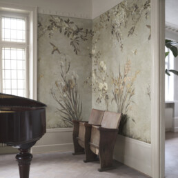 Graatsilise ajatu ilu, romantilise puudutusega, antiikse võlu loov käsitsi maalitud mustriga seinamaalinguna mõjuv pilttapeet.