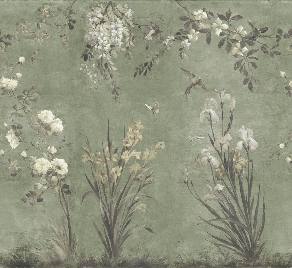 Graatsilise ajatu ilu, romantilise puudutusega, antiikse võlu loov käsitsi maalitud mustriga seinamaalinguna mõjuv pilttapeet.