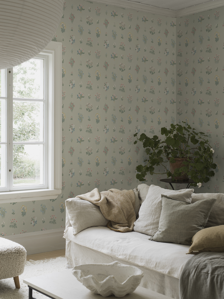 See tapeet toob ruumidesse õhulised ja õrnad mitmevärvilised lillemotiivid. Heledal taustal pakuvad väikesed käsitsi maalitud lilled rahulikku, kuid värvikat ilmet, mida on lihtne sobitada teiste kodu elementidega.
