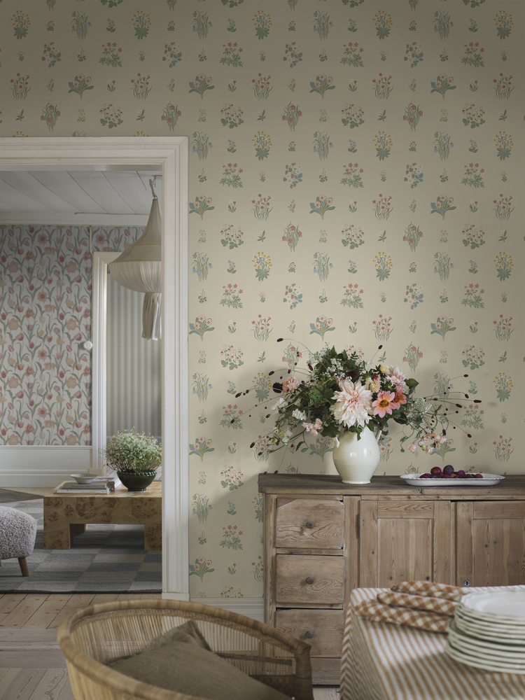 See tapeet toob ruumidesse õhulised ja õrnad mitmevärvilised lillemotiivid. Heledal taustal pakuvad väikesed käsitsi maalitud lilled rahulikku, kuid värvikat ilmet, mida on lihtne sobitada teiste kodu elementidega.