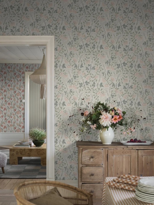 Romantiline disain on inspireeritud disainer Nora Tysklindi lopsakast aiast Rootsis, kus lilled õitsevad vabalt ja põimuvad omavahel võluvalt metsikult, tuues interjööri looduse õrna ilu ja tunnetust mahedates pastelltoonides.