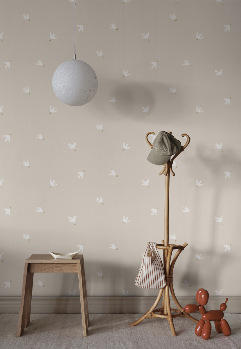 Lase rahul oma ruumi hõljuda selle tapeediga, kus graatsilised tuvid kannavad üle seinte rahu toovaid meeleolusid. Pehmed pastelltoonid sulanduvad üksteisega, luues rahustava pühamu, mis on täis õrna liikumist ja vaikust. Too igasse ruumi õrn, kuid samas silmatorkav hõng selle elegantse mustriga, mis sosistab igal silmapilgul rahustava loo.