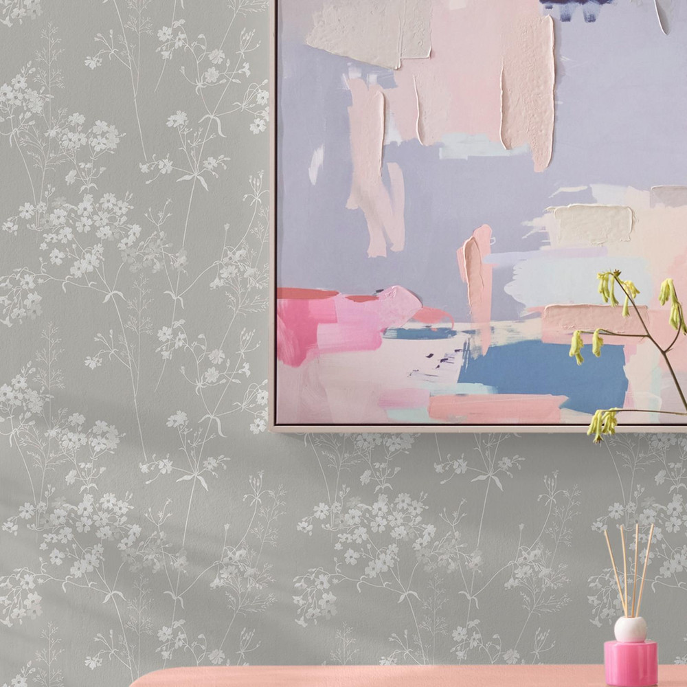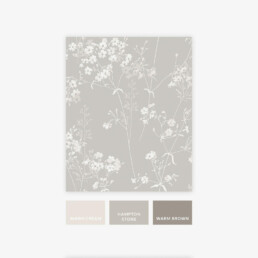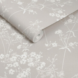 Tervisesõbralikule mattpaberile prinditud pastelselt neutraalsel beežikas-hallil taustal kreemikas-valge õrn aasamuster justkui kergelt tuules liikumas, see käsitsi maalitud loodust armastav disain toob koju võlu, soojust ja iseloomu.