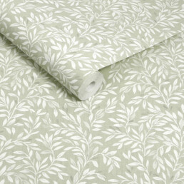 Mattpaberile prinditud naturaalset hõngu lisav kotiriidest tekstiilpinda meenutav soojal rohelisel taustal kreemikas lehemuster, see käsitsi maalitud loodust armastav disain toob koju pehmust, võlu, soojust ja iseloomu.
