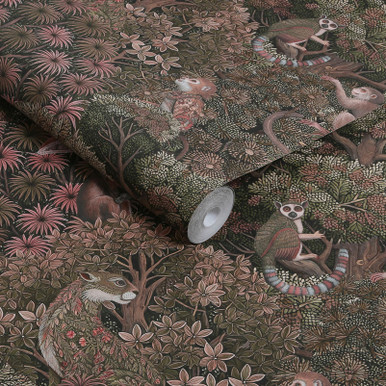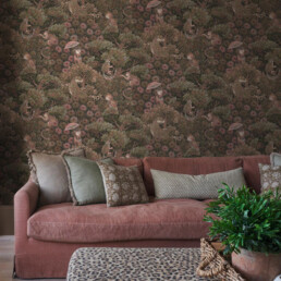 Unenäoline tapeet, millel okste vahele koguneb hulk uudishimulikke olendeid: lilledega kaetud leopard, suurte silmadega leemurid ja vallatud ahvid – igaüks neist on kujutatud õrna ja lugusid jutustava detailiga. Tumedam taust annab sügavuse ja intrigeeriva tunde, botaanilised tekstuurid mõjuvad soojalt ja haaravalt. Lummava värvipaletiga mänguline seinamaaling, mis sobib ideaalselt magamistubadesse, hubastesse nurkadesse või kõikjale, kus on vaja väikest imet. Disain, mis tundub nagu unejutt – kihiline, väljendusrikas ja vaikselt maagiline.