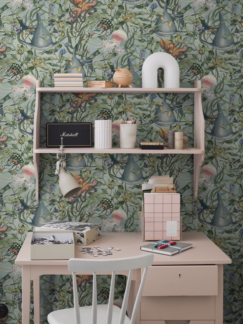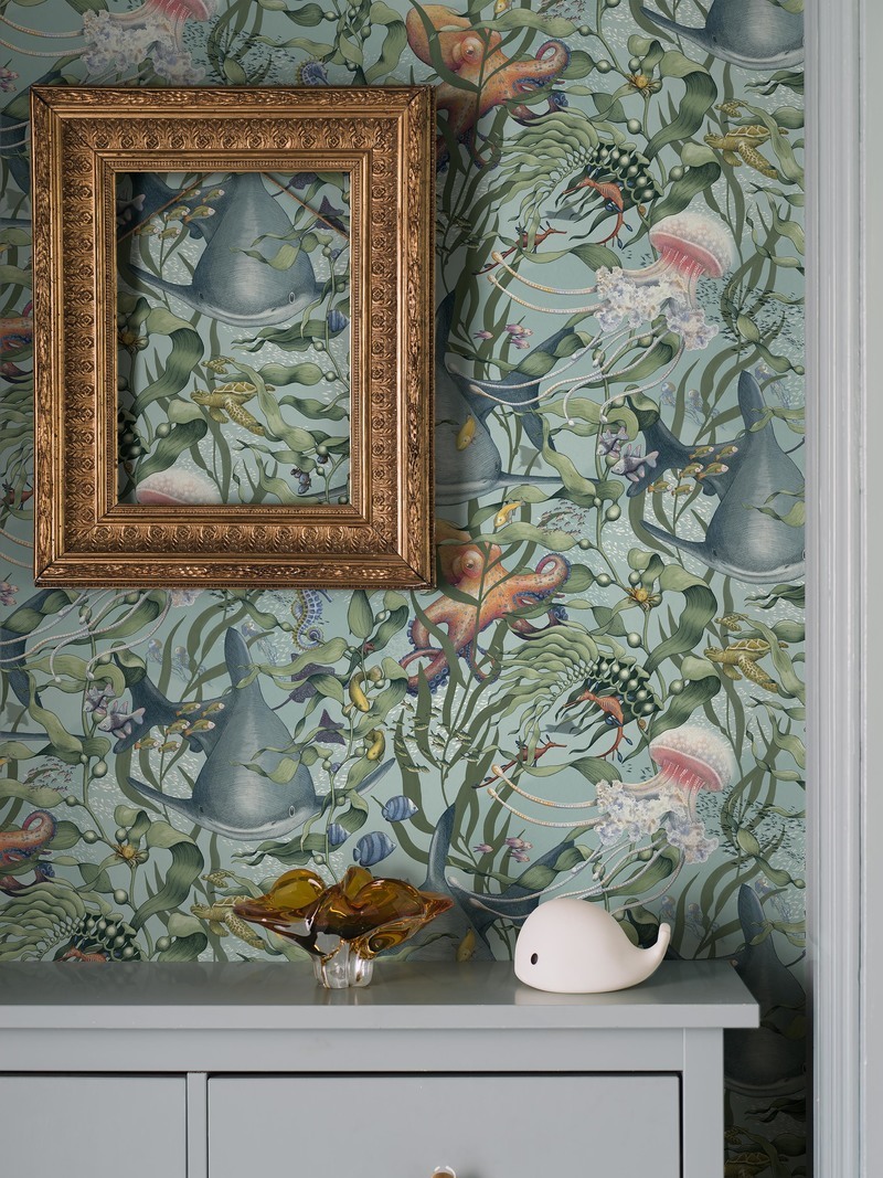 Ookeanisügavuste vaikne müsteerium – merevetikad õõtsuvad õrnalt, paljastades varjatud mereelustikku, alates riffhaidest kuni merihobusteni. Ajatu valik neile, keda köidavad mereime. Lõõgastava tunde loomiseks on see tapeet  ideaalne valik nii lastetubadesse, kui ka vannitupp, miks mitte ka elu- ja magamistubadesse.