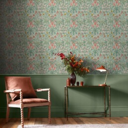 See William Morrise loodud tapeedidisain kuvab kaunilt summutatud värvipaletti pehmetes loodustoonides, lisades värske tundega nostalgiat. William Morris oli looduse eestkõneleja ja tema kujundused olid üldiselt asümmeetrilised, et peegeldada looduse orgaanilisi ebatäiusi. Woodland Weeds on aga küllaltki sümmeetriline. Kujunduses on kujutatud mitmesuguseid väikeseid lilli, viinapuid ja lehti, mis on põimitud kaunisse ja detailsesse paigutusse. See ülimalt dekoratiivne muster meenutab keskaegset millefleuri – kunstilist meetodit maalide või tekstiilide tausta täitmiseks rohkete pisikeste lillede, taimestiku ja loomastikuga; tehnika, mida Morris teadaolevalt imetles.